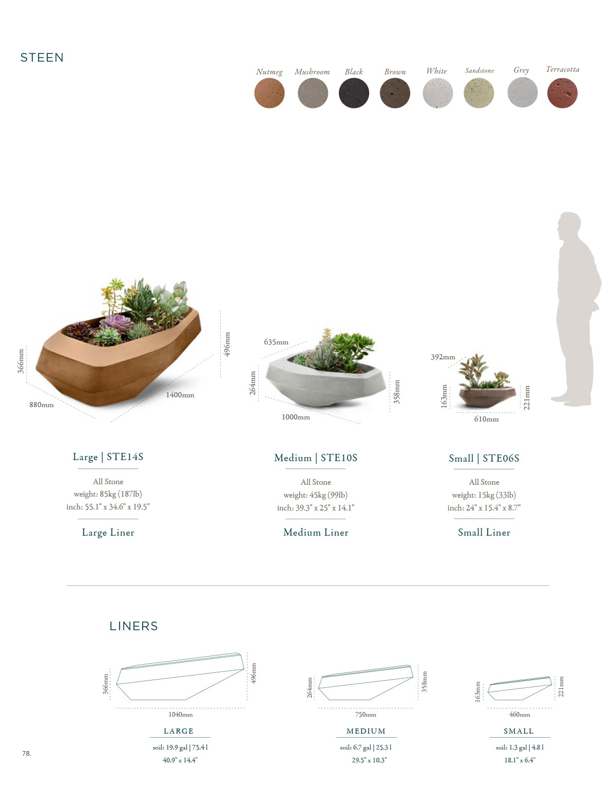 The Afrikaans (South African language) word for rock or stone is “steen,” which is the inspiration for the low, stone-like-shaped Steen planters.